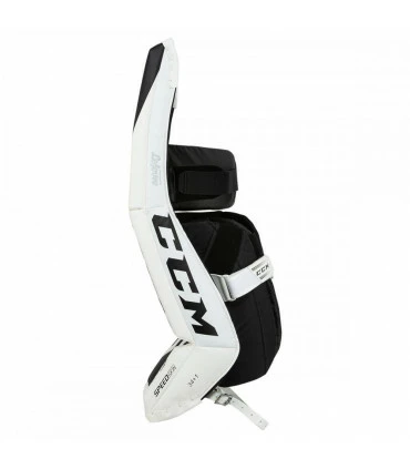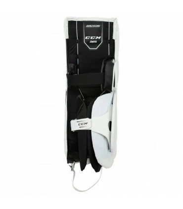 En parlant de système de cerclage, CCM a amélioré les caractéristiques de cerclage de la série Extreme Flex. CCM a enlevé les deux lanières de cuir situées derrière le genou et a totalement amélioré le système de lanière de mollet. Appelé le système de cerclage par mouvements rapides, une sangle velcro intérieure et extérieure permet d’obtenir un ajustement personnalisé qui permet aux gardiens de but de faire pivoter les jambières et de les exécuter à leur guise. CCM a ajouté une touche de finition aux lanières d’attache en corde élastique. Les cordes élastiques, qui remplacent le système de lacet de patin, sont velcro ensemble et permettent aux jambières de s’asseoir près du patin mais de se plier librement et de s’étendre lorsqu’on tombe dans le papillon.