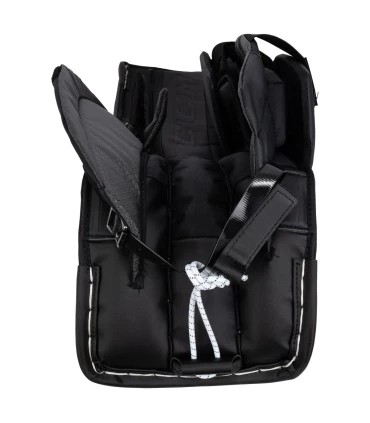 Les jambières de gardien de but CCM E5.5 sont enveloppées dans le matériau exclusif SpeedSkin de CCM. SpeedSkin est tout aussi