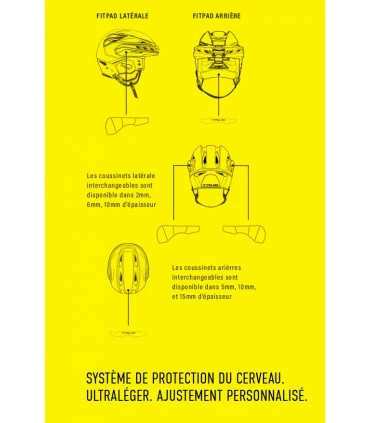 Le trait standard dans tous les casques Dynamic 9 Pro soit les Fitpads échangeable occipital d’arrière et coté qui sont disponible en trois épaisseurs. Cela fournit 360 dégrées d’ajustabilité et de forme personnalisé.