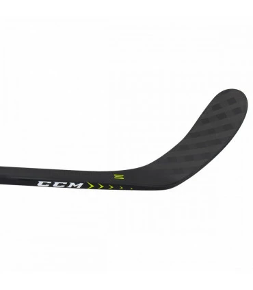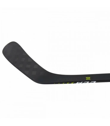 Profil de rigidité optimisé de la lame : va du moins rigide au talon au très rigide à la pointe, pour mieux sentir la rondelle et la décocher rapidement.