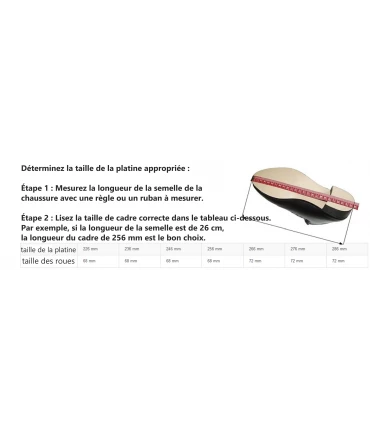 Étape 2 : Lisez la taille de cadre correcte dans le tableau ci-dessous. Par exemple, si la longueur de la semelle est de 26 cm,